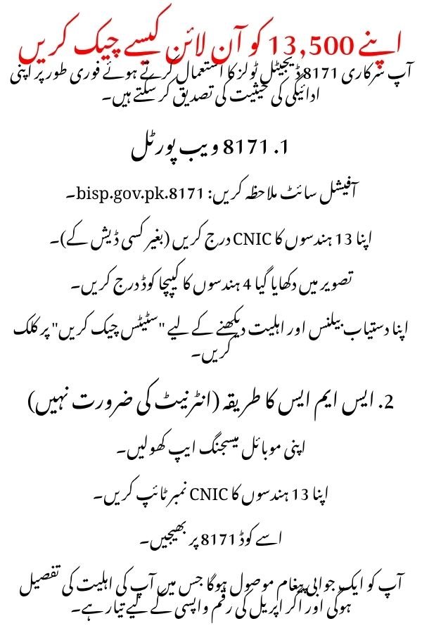 The Government of Pakistan has officially resumed the BISP (Benazir Income Support Programme) 8171 payments as of April 2026. The quarterly installment has been confirmed at Rs. 13,500, with some eligible families receiving up to Rs. 14,500 depending on regional top-ups.